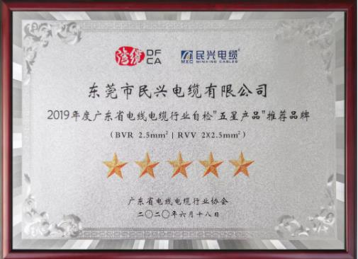 2019年度广东省电线电缆行业自检“五星产品”推荐品牌